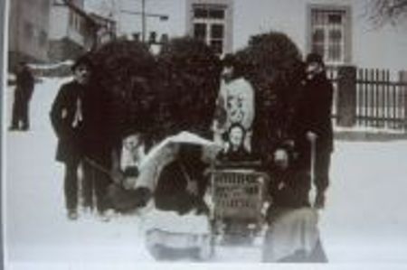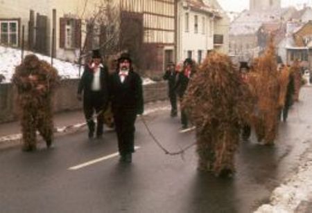 1974 Clique aus Jahrgängen 1955/56 Erbsenstrohbär |